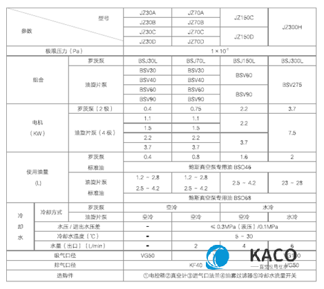 BSJ羅茨泵系列參數(shù):